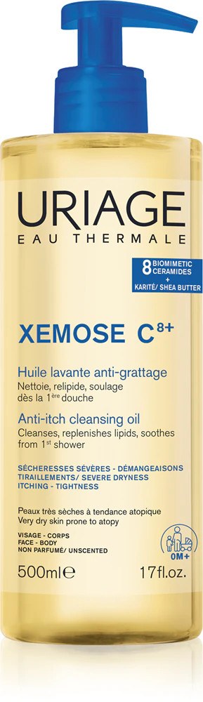 Uriage Xémose olajtusfürdő kíméletesen tisztítja, nyugtatja, védi a száraz/nagyon száraz bőrt.