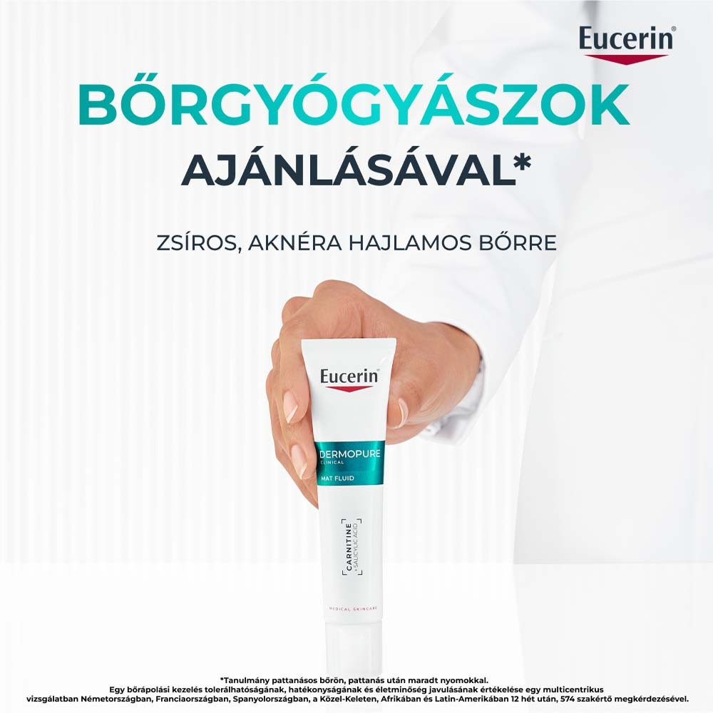 Az Eucerin Dermopure Clinical Mat Fluid (40 ml) egy könnyű, nem zsíros fluid, amely 8 órás mattító hatást biztosít. Salicilsav (BHA) tisztítja és hámlasztja, míg L-karnitin szabályozza a faggyútermelést. Minimalizálja a pórusok és bőrhibák láthatóságát, hidratál, ideális zsíros, aknéra hajlamos és érzékeny bőrre.