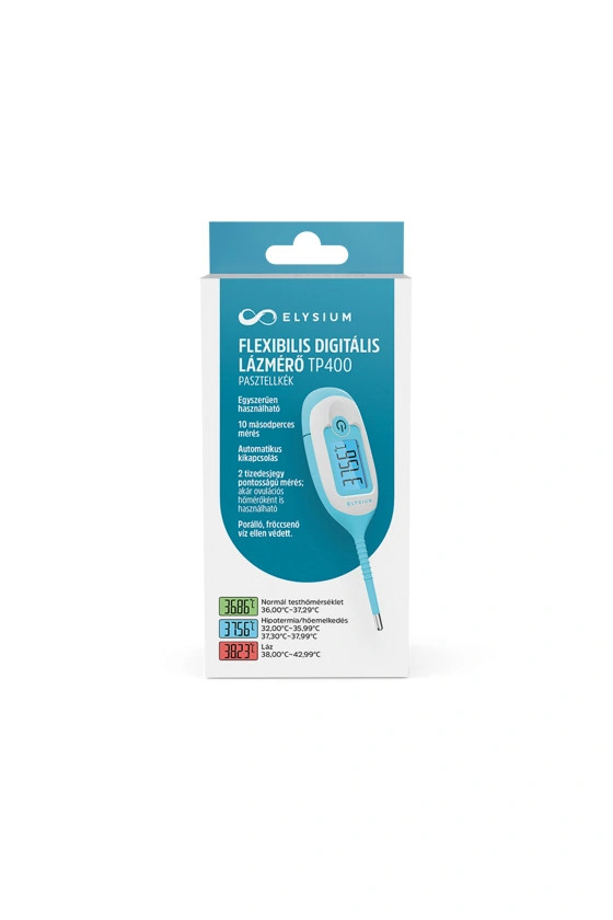 A könnyen használható Elysium TP400 flexibilis digitális lázmérővel rendkívül gyorsan, mindössze 10 másodperc alatt kaphatunk eredményt testhőmérsékletünkről. 2 tizedesjegy pontosságú mérésre képes, így akár ovulációs hőmérőként is alkalmazható. Porálló, valamint fröccsenő víz ellen védett kialakításának köszönhetően megbízható társ a mindennapokban.